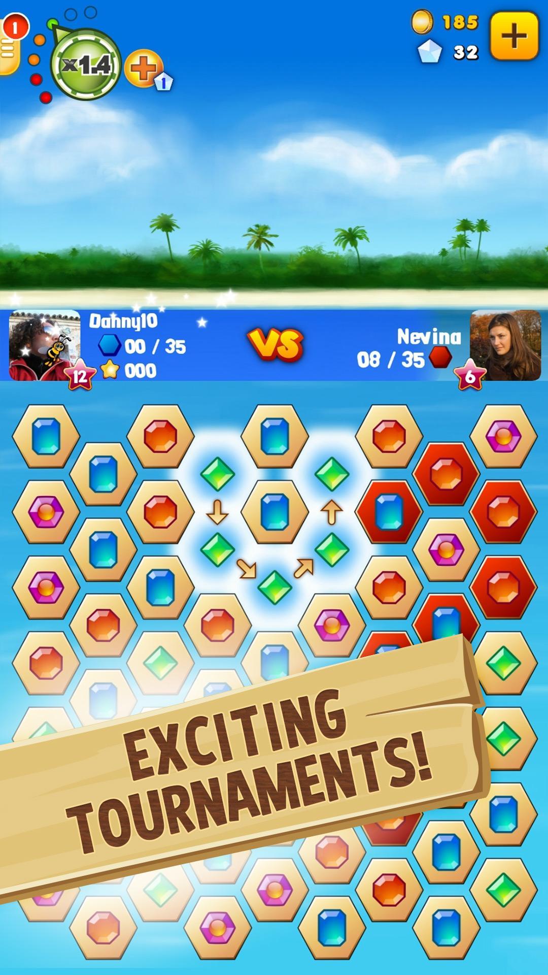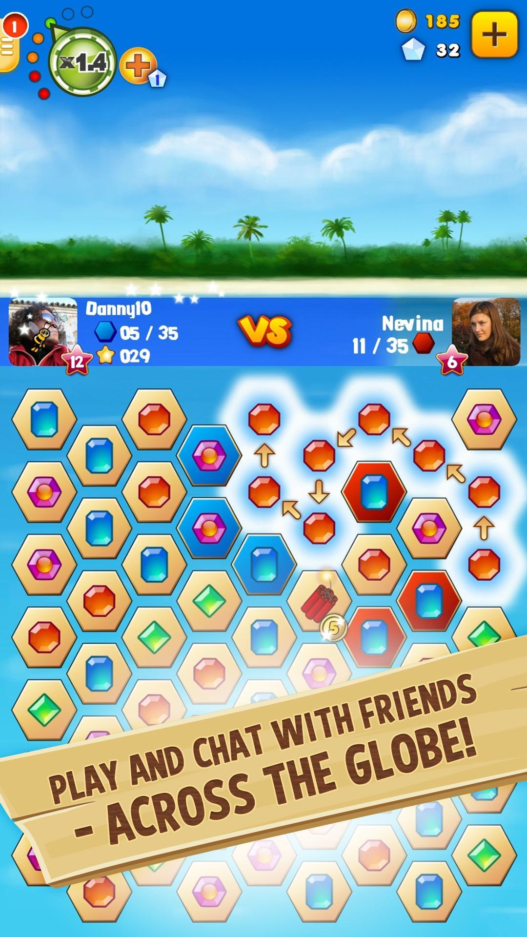 In Diamonds Paradise your goal is to beat your opponent by taking over the game area by chaining diamonds. Game is played in turns against live opponents! Use bombs and other special items to help your quest. Open mystery boxes to reveal secret prizes. Earn diamonds by clearing achievements and join tournaments to win great prizes!