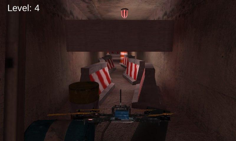 Complete levels by flying quadcopter in the narrow tunnel and between different obstacles.
