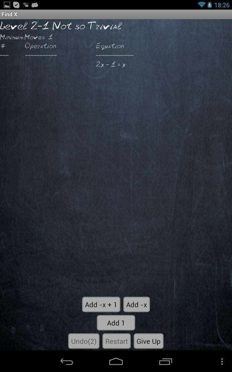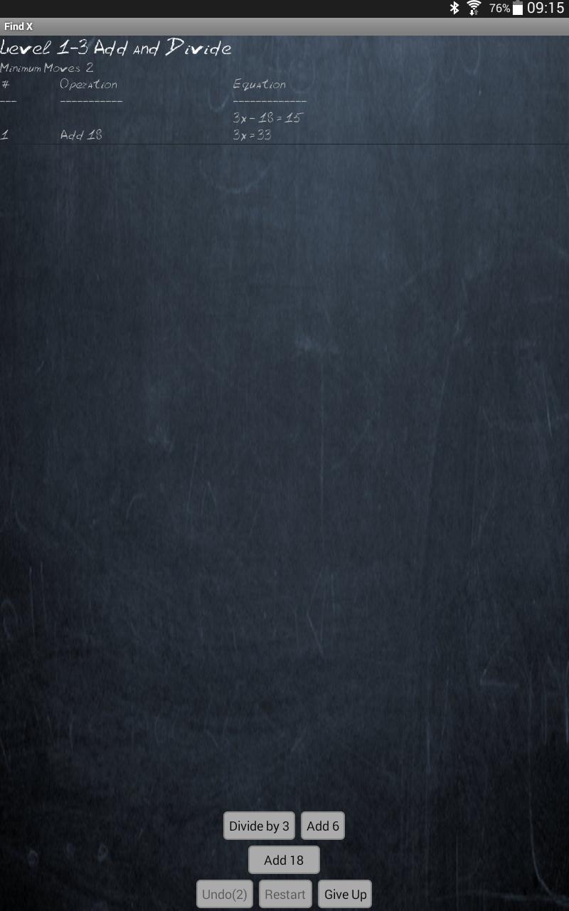 The game presents a series of stages composed of several levels where you must solve for X. It sounds simple, if you know algebra. However, it becomes a more complicated puzzle because the operations you can apply are limited to a small subset for each level.