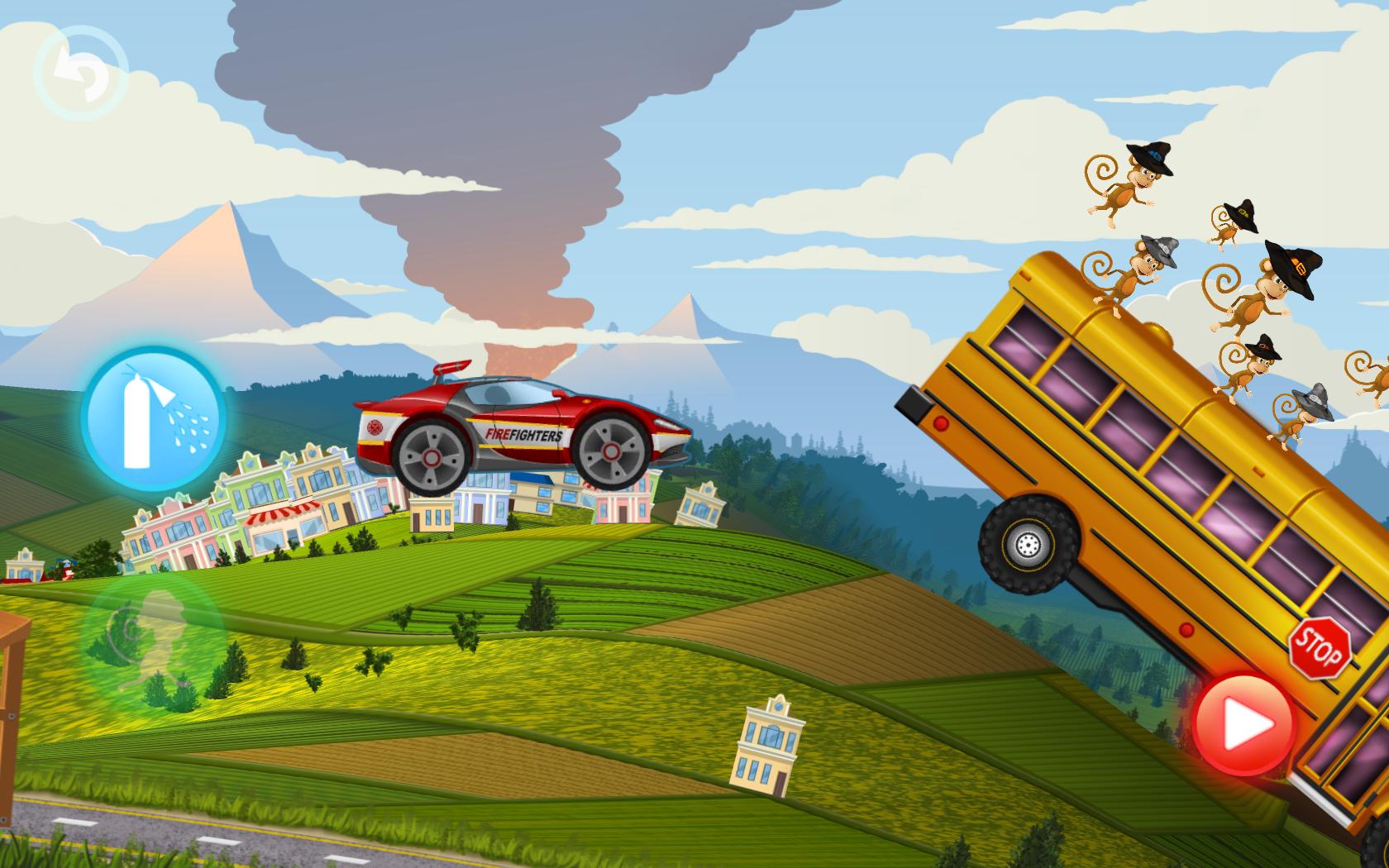 ◆ Use green MONKEY button to summon monkeys’ firetrucks for the help.