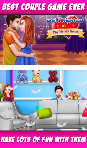 Girl's Nightout at Boy Friend's Home is a game with a simple interface that plays like an interactive comic. Fans of romantic stories will love it.