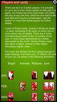 Flower cards were invented in Japan, possibly in order to circumvent laws against playing with conventional 4-suited card decks. Nowadays, however, it is in Korea that games with flower cards are most popular. The best known Korean flower card game is Go Stop(맞고,こいこい), which like most Japanese flower card games is a fishing game.