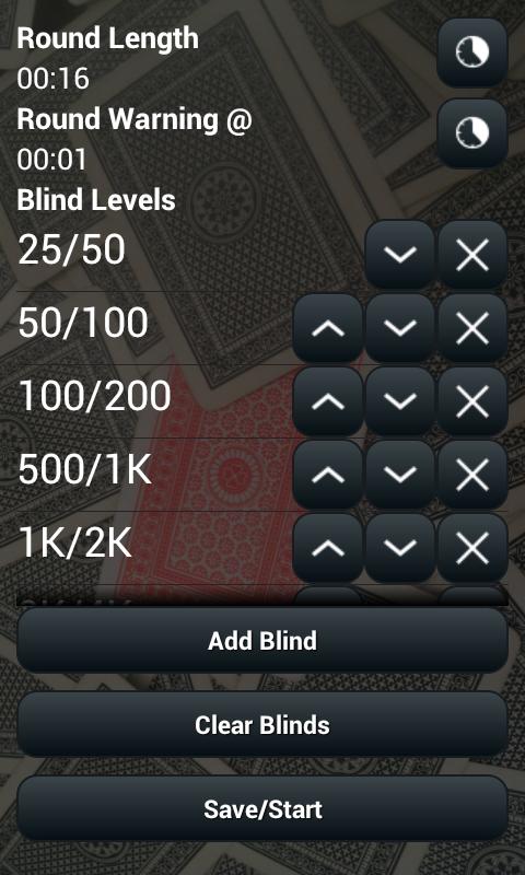 * Warning sound plays just before blinds tick over and alarm sounds plays when the blinds change.
