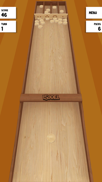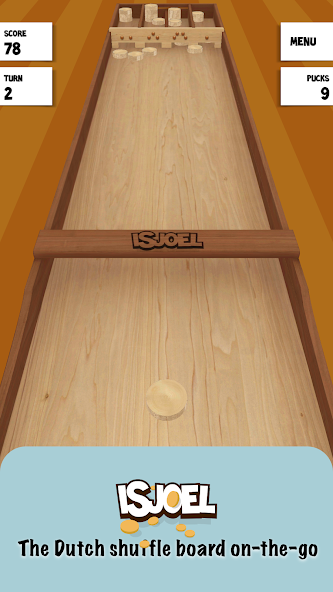 iSjoel (pronounced izjool) is based on the popular traditional Dutch party game Sjoelen. The goal of Sjoelen is to slide 30 wooden pucks on a shuffle board into numbered scoring boxes. The boxes are numbered, from left to right : 2, 3, 4 and 1.