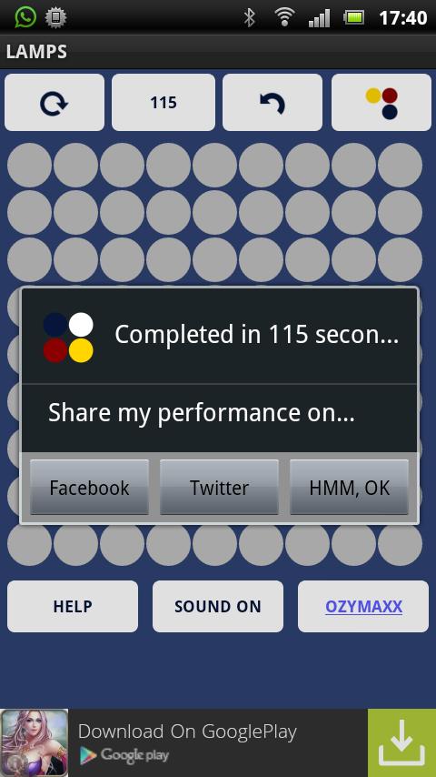 Looking for a simple and an addictive board game? You are in the right place! LAMPS is a simple color marking game and it works fast on almost every Android 2.3 or higher phones.