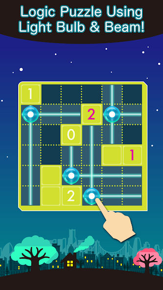 Tap any cell on the screen to place a light bulb in it. Light beams from the light bulb spread out in four directions and illuminate all cells in each direction.