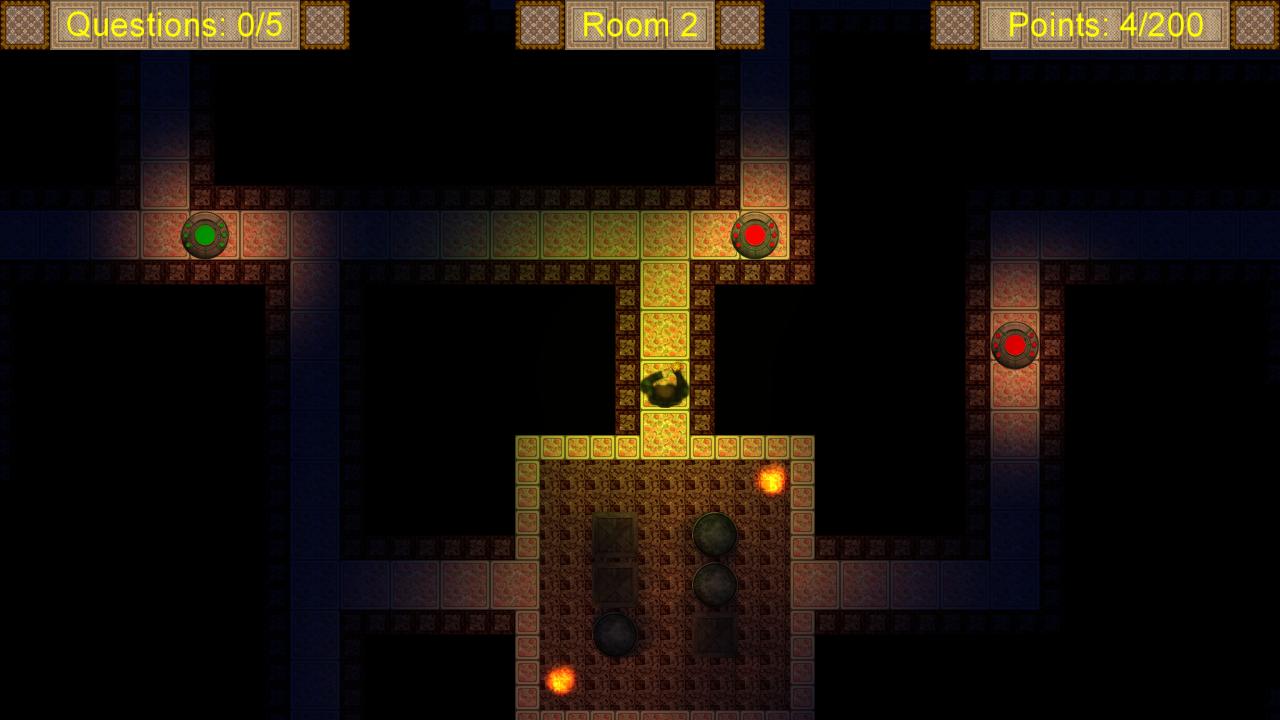A right answer will give you 4 points. However, you will lose 1 point for a wrong answer and you will be brought back to the original position for the current room! When hit by a drone, you will lose 10 points, so be very careful...