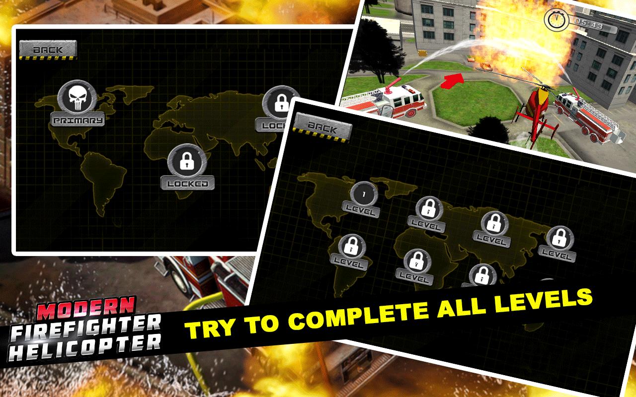 Have you ever had a chance to save the day or ever dream to be a firefighter??. Well you have got your chance because Modern Firefighter Helicopter will give you the opportunity of flying a Helicopter through different parts of the city and rescue people. Ordinary Firefighter trucks or fire-fighters can't help at this point.