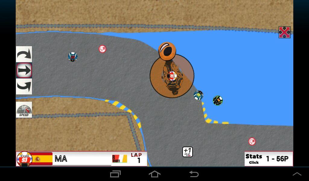 Take +1, search good luck, go inside road if you don't wanna lost power and go faster with speed button to win.