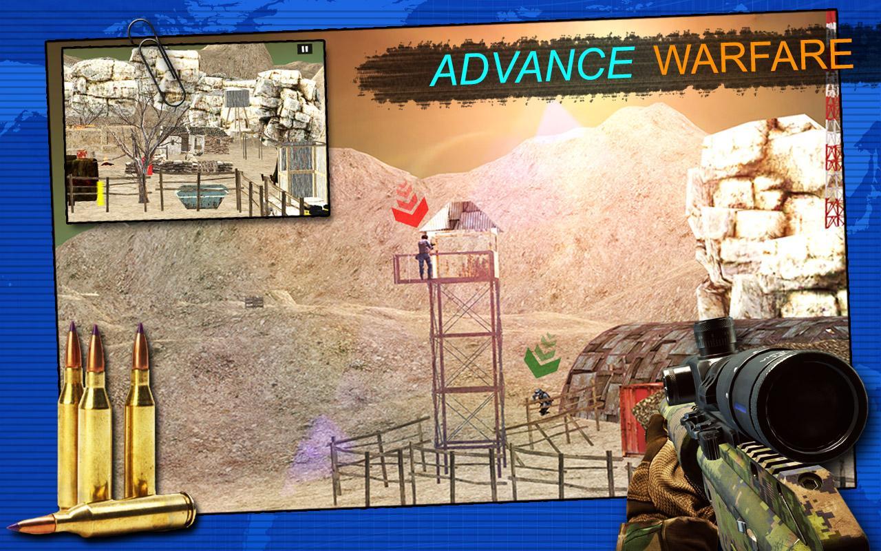After a successful previous mission, the mountain Sniper has been recalled for another mission called Mountain Sniper Reloaded. This is going to be a multi task mission, in which the mountain sniper would depend on the secret info shared with him by the spotter, who is also involved in this mission against all the insane crooks.