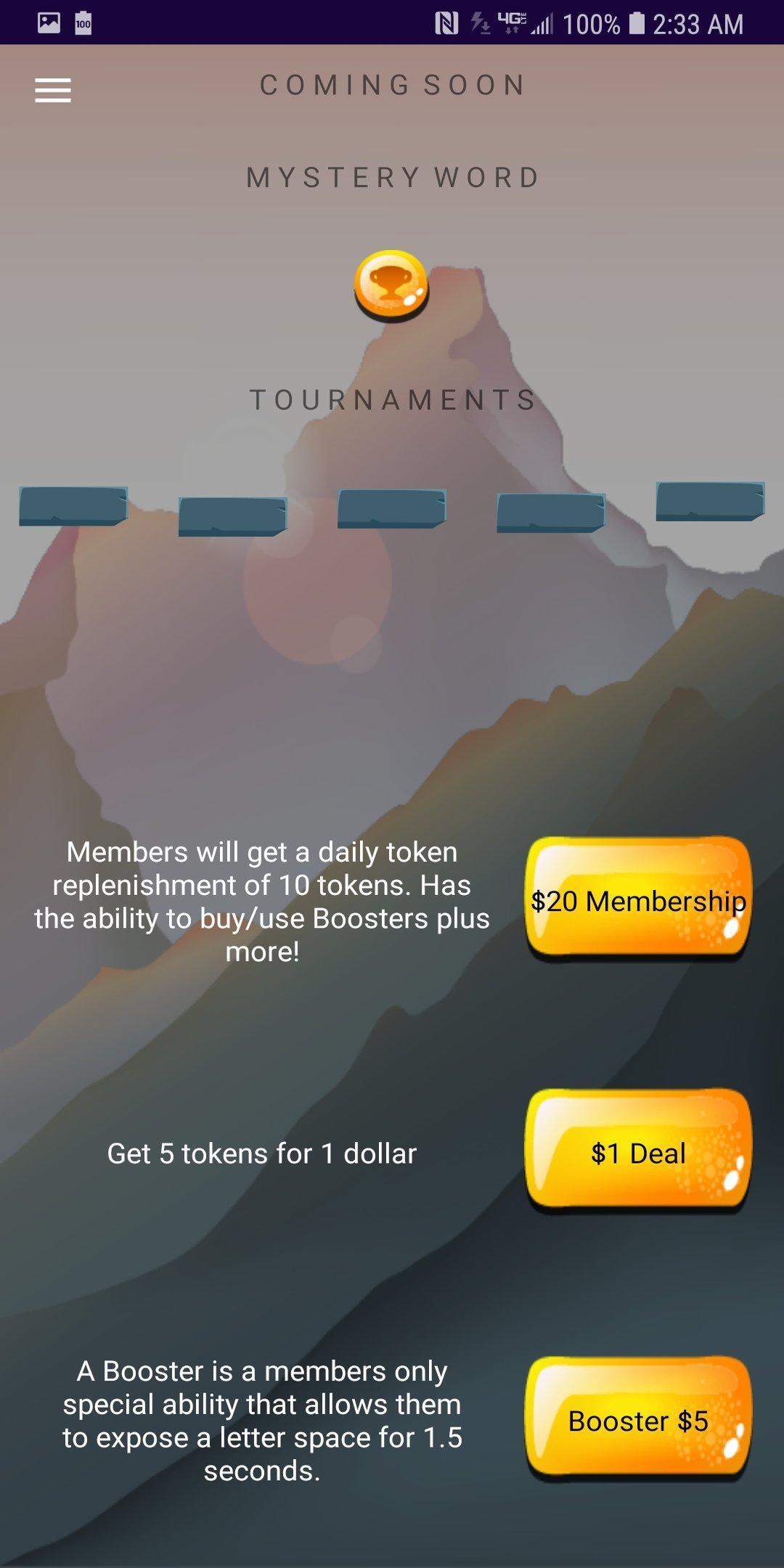 Right after sign up is complete the new user will be given 10 free tokens that can be used right away to start guessing the current Mystery Word.