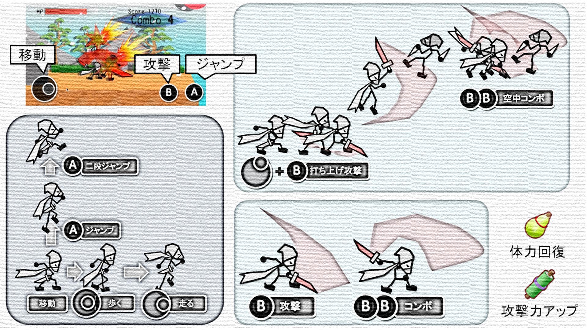 A refreshing action game in which a ninja slashes, slashes, and slashes to save a captured princess!
