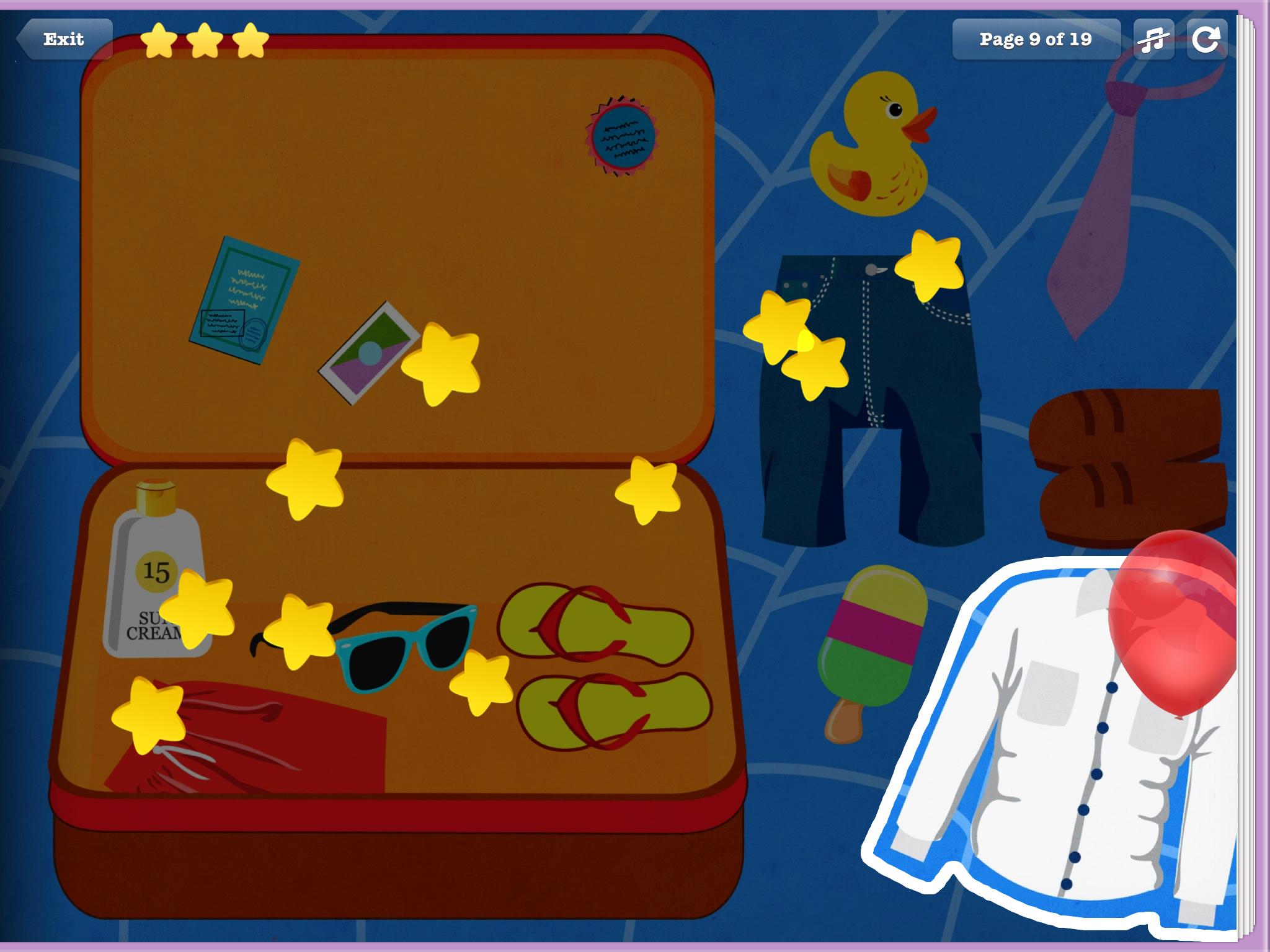 Kids learn what to pack for a vacation in this interactive educational game!