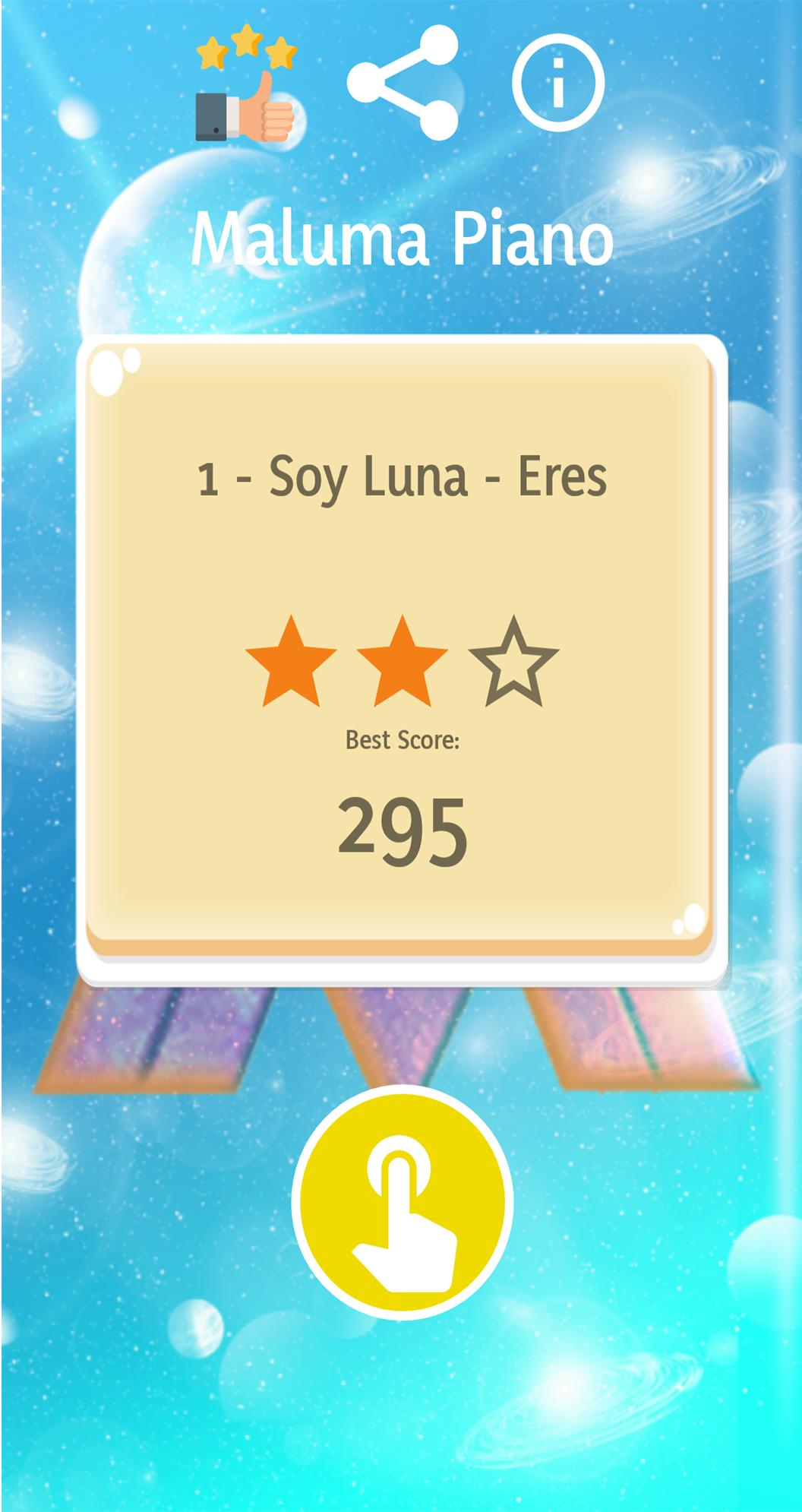 Try to imagine if you sang with maluma with a very popular piano accompaniment. you will be very proud. This is a PIANO game that can realize your dream to play and sing with maluma. This game is very simple. you just touch the black tile and follow the song that you have chosen to finish and get 3 stars.