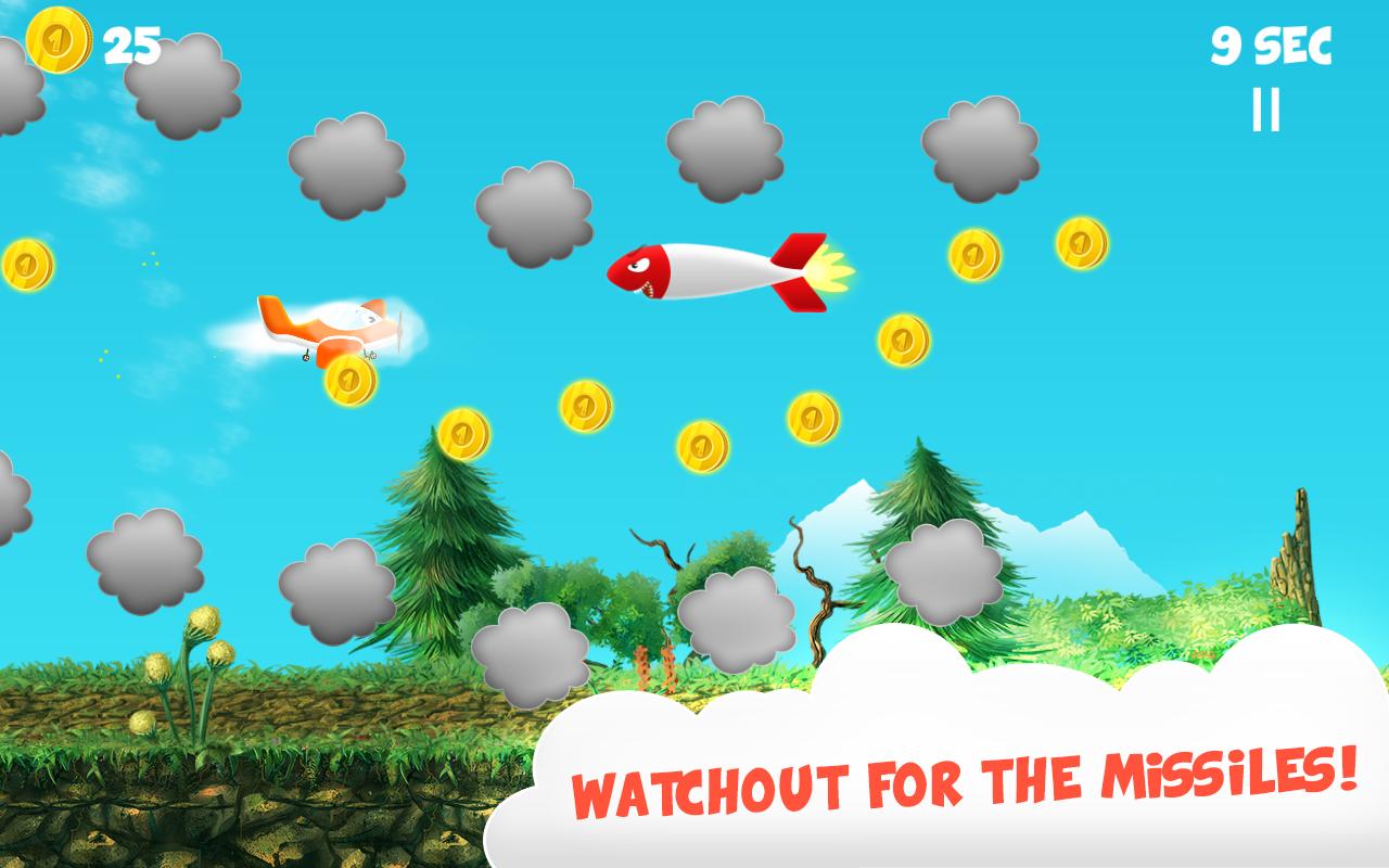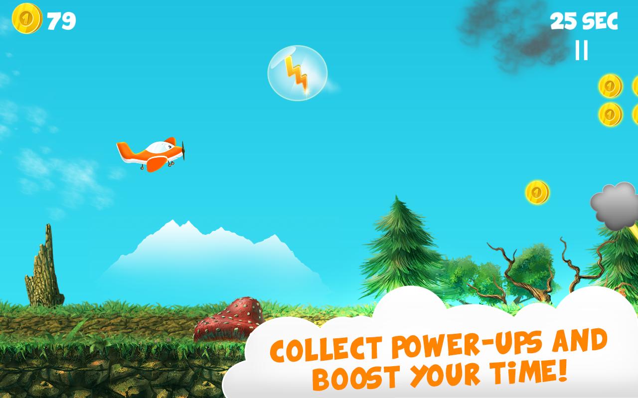 Tap the screen to fly, guide your plane through the obstacles and collect as many coins you can. Use the power-ups to stay in the air as much as possible!