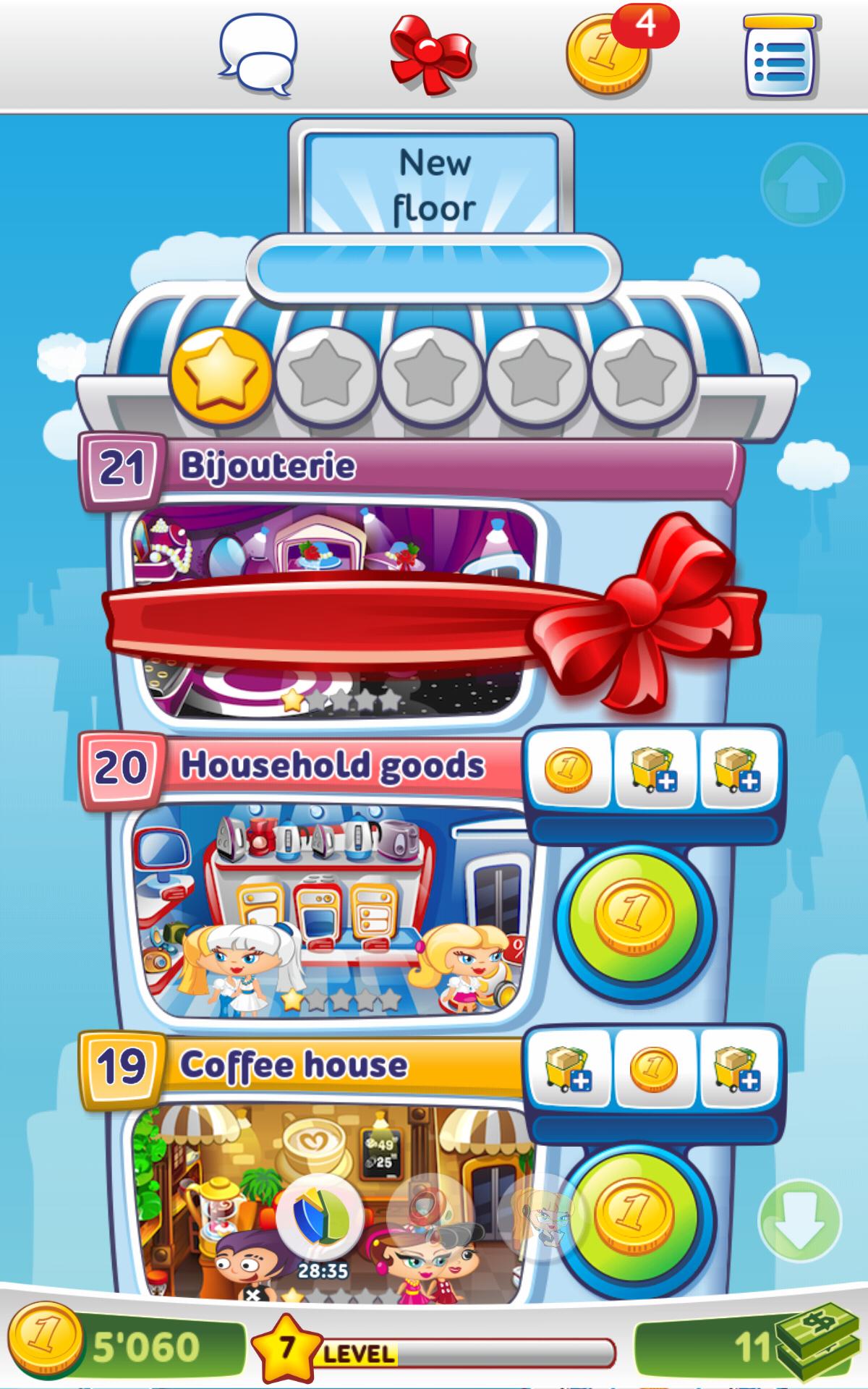 It's snowing! Celebrate the holiday update with new VIP's, 20 more floors of addictive fun and daily gifts to unwrap. Let the Building Manager and Elevator Attendant take care of everything while you celebrate with your family and friends in your city and enjoy the holidays together!