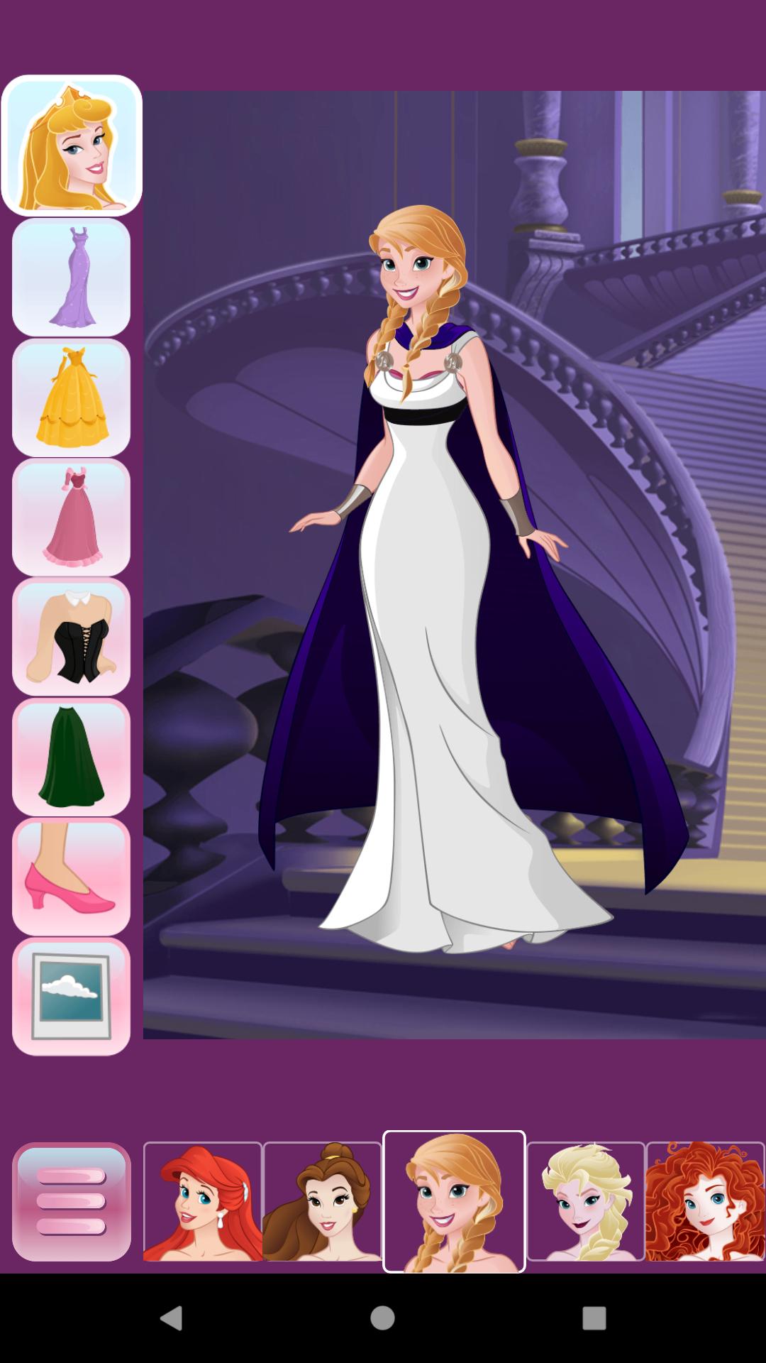 Princess application created for lovers of movies. Here you can find almost all your favourite princess! Help them to choose the best clothes and accessories which suit them to make them look beautiful. They are ready to play dress-up with you. This game will develop your sense of taste and fashion skills. This game will become inseparable part of your phone.