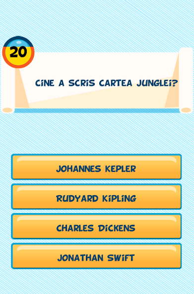 "Raspunde la intrebare" is a general knowledge game. Like in any other trivia quiz game you will receive a question and have to choose the correct answer from 4 different choices. The questions are grouped by difficulty. At the beginning you will receive easy questions, but after you gather enough gold you can unlock 2 different difficulties: medium and hard.