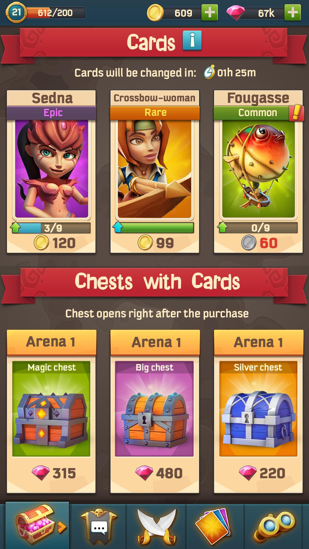 Royal Pirates is a new, challenging and really addictive multiplayer game. We created incredible world of pirates, mysterious creatures and amazing magic. Open chests, find new cards, upgrade them and make your battle deck. Participate in clans, give cards and get Gold and experience in exchange. Defeat other players. Prove you are the best!
