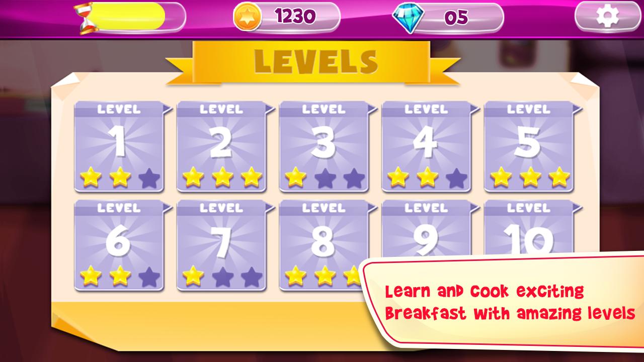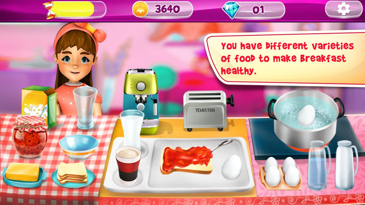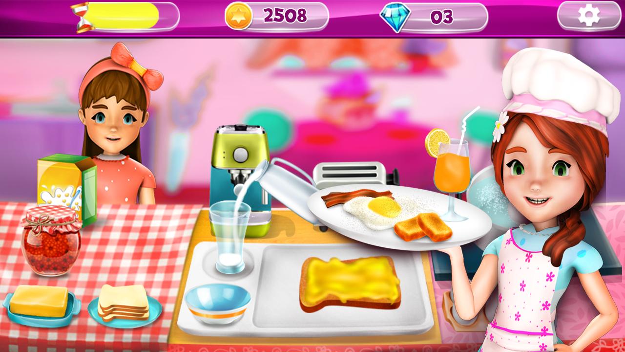 What a great morning it is! The royal princess wants to have a special breakfast today. Use your time management skills & delicious recipes to mix ingredients together and prepare yummy breakfast before the time runs out. Put your time management skills to the test by serving the royalty with the best breakfast dishes in time to make her happy. Your restaurant is crowded with so many customers to try your amazing dishes like burger, pasta, pizza, deep fried dumplings, Chinese dishes, vegetable dishes, tasty desserts, ice cream and cake but your specialty is your special breakfast menu. Take up the challenge for a fast-paced fun. Play Royal Princess Breakfast to cook so many different dishes. Indulge yourself in an all new kitchen story of street food time management and Prepare crispy French toast, soft pancakes & bake burger bun, cook your favorite creations in your kitchen according to the orders you receive in your restaurant. You are master of all chef's so cook fresh n tasty food and don’t let your customer princess wait for her order too long. Dash, mix & create the bakery fresh bread that tastes yummy & juicy. Run your own royal fast food street restaurant chain with the best meal, perfect time management and service in town. The kitchen story doesn’t end here. Collect coins or money so that you can upgrade your kitchen appliances and equipment for better service. Start your venture & become a restaurant business tycoon. Mix, Bake and decorate to impress! Happy cooking the star chef!