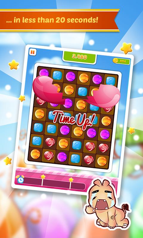 Sweet Madness is a mix of familiar match-3 connecting gameplay with challenging puzzle format – you can only find one longest path in less than 20 seconds to pass levels.