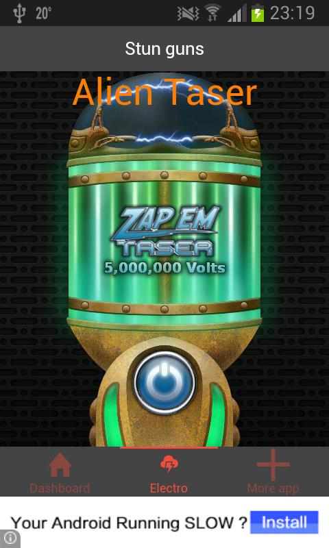 This app is a fun game, an electroshock weapon created for jokes. Play with family and friends, you can play everywhere and with anyone, even your pet, they are afraid of an electric shock!