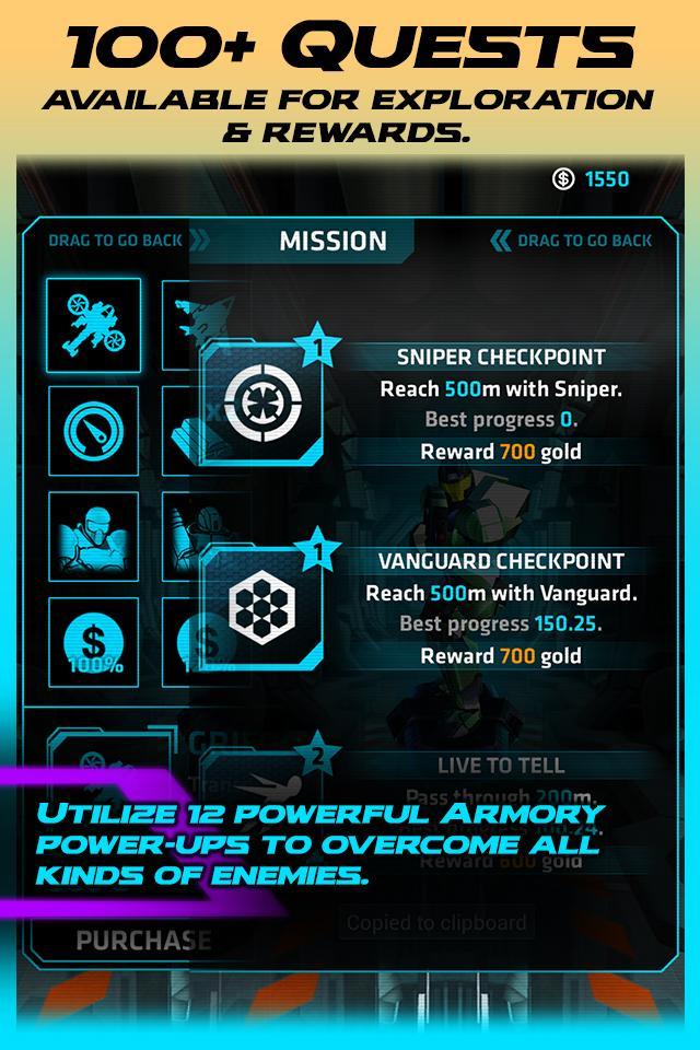 • Utilize 12 powerful Armory power-ups to overcome all kinds of enemies.