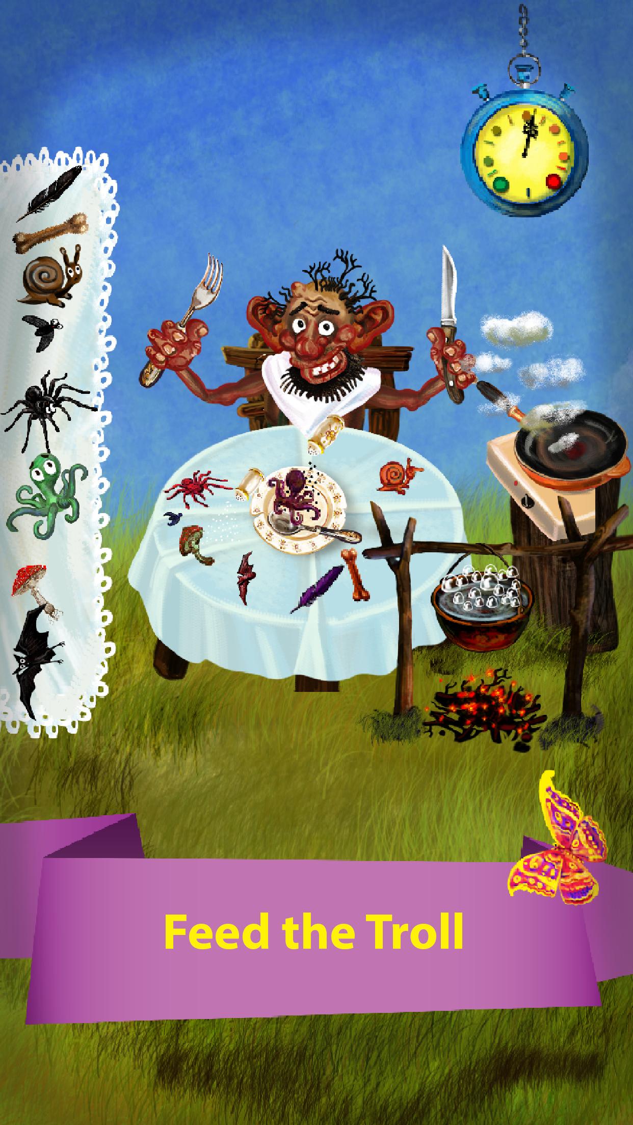 Why is PonyApps’ version of Three Billy Goats Gruff so appealing to young children? Throughout the fairy tale there are games and jigsaw puzzles to entertain and engage young readers. Guide the goats through the labyrinth by finding treats and tools to help them. Recognize patterns by selecting the object that is different. Help the goats identify the sound of the animals around them, or find the shape to fit the shadow. The games are numerous and not contained in a single section separate from the story. Users can color a photo of one of the goats, find the ogre hiding in a barrel, clean a room, build a bridge and the like while reading the story. Some parents may find this a bit much because games appear every several pages, but the developer lets users off the hook with that handy settings button that can disable the games if a simple story is wanted.
