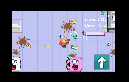 Toilet Wipeout is a 2D scrolling platform game. It's a dirty job, it's your job.