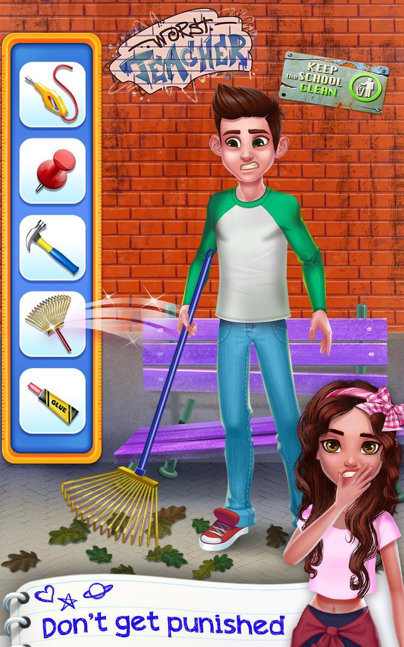 Apa yang Anda lakukan saat guru Anda menjadi gila?! Saatnya membalas dendam! Nikmati ledakan di kelas sekolah menengah Anda dengan lelucon sekolah paling gila yang pernah Anda lihat. Dorong dia dengan petasan, buat kentutnya di atas bantal whoopie, mengikat tali sepatunya, dan banyak lagi! Oh tidak - sekarang guru Anda bahkan lebih marah dan akan ada beberapa hukuman. Untung Anda memiliki beberapa trik di lengan baju Anda ... dan jika Anda melakukannya, semua orang akan senang! Ini adalah kisah sekolah menengah yang cemerlang! Terserah Anda untuk melakukan gadis itu berdandan, makeover, gaya rambut, dan mengatur piknik romantis yang sempurna - jadi mereka berciuman dan jatuh cinta!