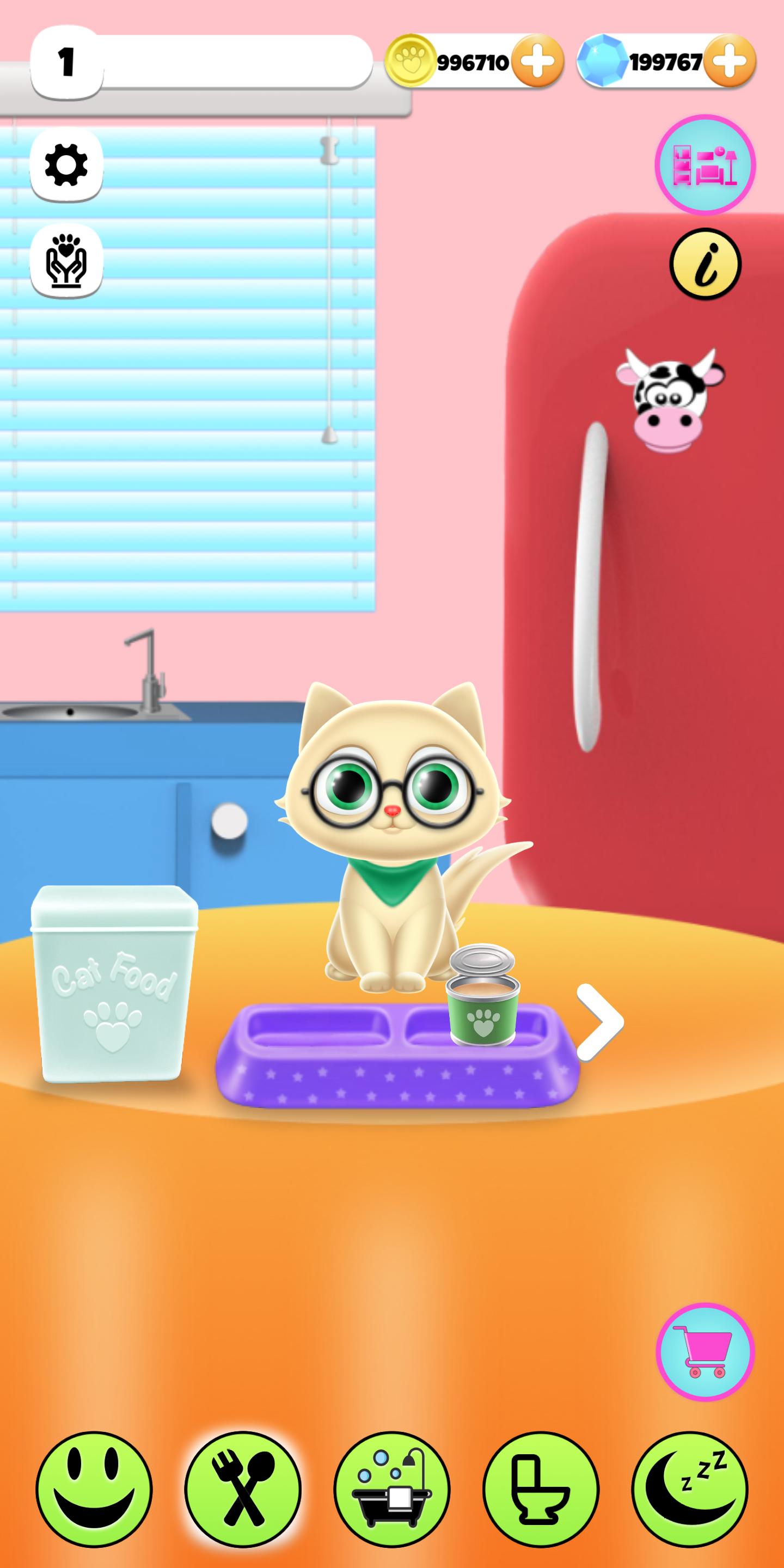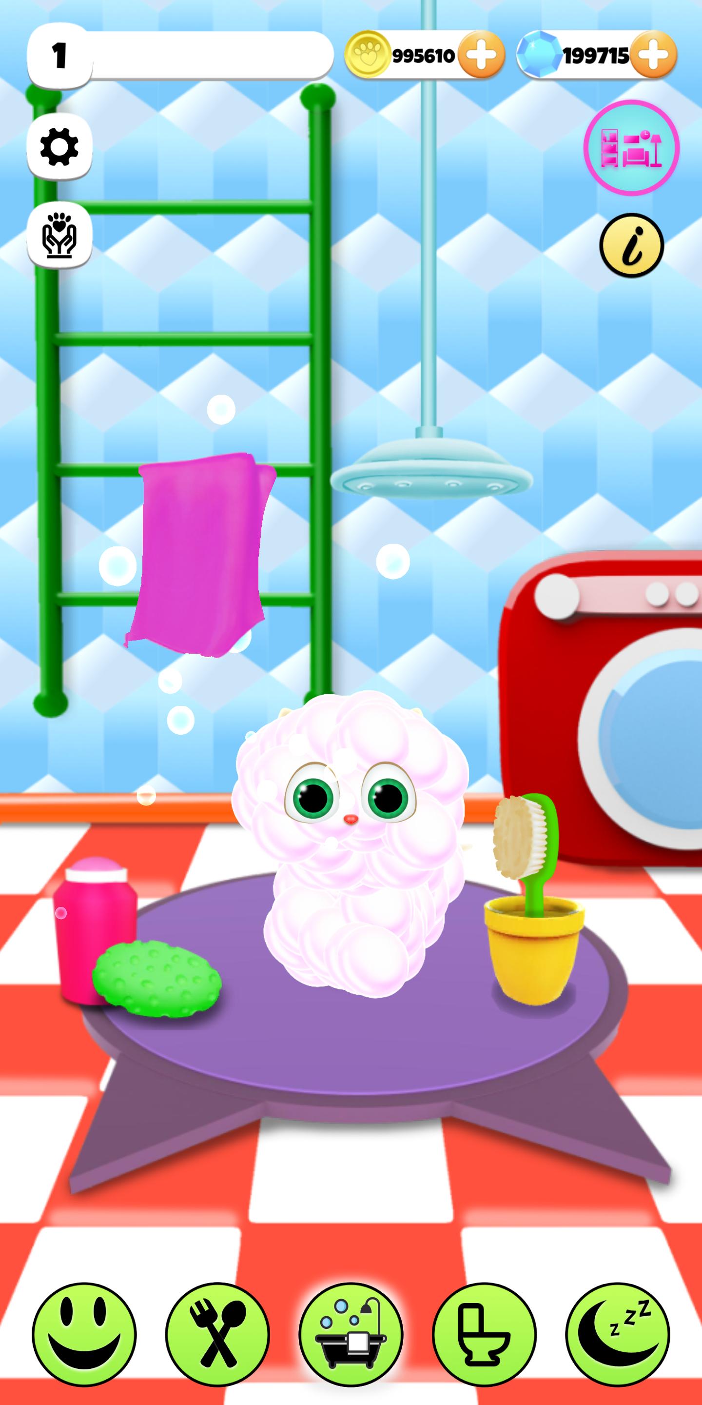 Untuk menjaga anak kucing imut Anda tetap bersih dan sehat dalam permainan hewan , Anda dapat membawanya ke dokter hewan, meletakkannya untuk tidur di tempat tidurnya sendiri, dan memberikannya berbagai bak bubble berwarna yang bagus. Sementara tanggung jawab ini membantu Anda mengumpulkan poin dan berlian dalam permainan, Anda dapat menggunakan poin paw di toko hewan peliharaan untuk mengurus semua kebutuhan teman hewan peliharaan Anda dan memberikan hadiah untuk membuatnya bahagia. Saat Anda membantunya tumbuh, Anda dapat menikmati hewan peliharaan virtual dan hewan yang sangat lucu.
