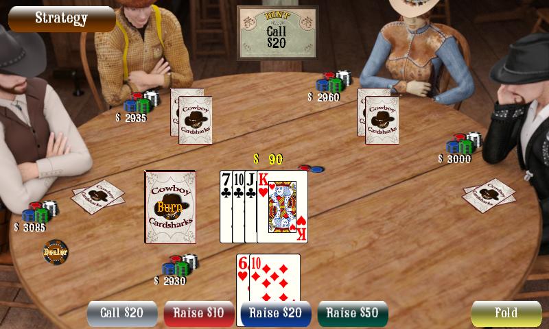 あなたのお金を奪おうとする4つの賢明なラッキングカードサメのホールドポーカーを演じることを学びましょう!ここオールドウェストでは、アニー、カウボーイ、ギャンブラー、子供と対戦します。各プレイヤーには独自のスタイルのプレイがあり、ヒントやコンテキストベースの戦略と組み合わさって、それらのスタイルと対戦することで、ポーカーのプレイ方法を学ぶのに役立つはずです。