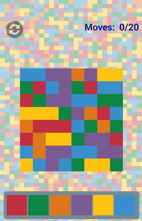 左上コーナーから始めて、あなたの目的は、ボードを1色で埋めることです。再生するには、画面の下部にある色付きのタイルをクリックします。次の動きを慎重に選択してください - 浸水した領域に触れる色を選択するたびに、それらの広場も得られます!