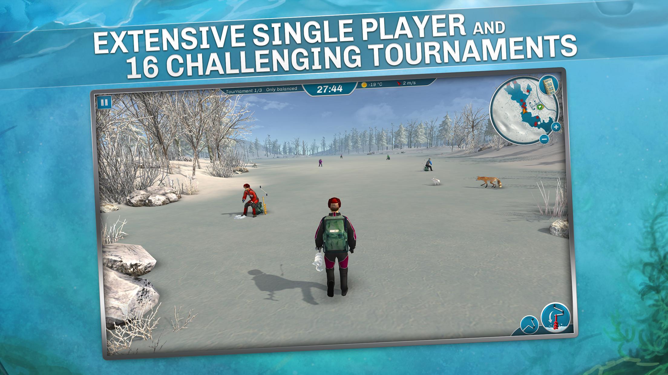 時間制限や競合他社ではなく、独立して釣りをして、 Ice Lakesリラックスしたゲームにして、家の快適さで釣りのスキルをプレイして調整します。一方、長いトーナメントと非常にカスタマイズ可能なシングルコンペティションは、プレイヤーのスキルと知識をテストしますが、新しい機器と無限の名声で報酬を与えます。