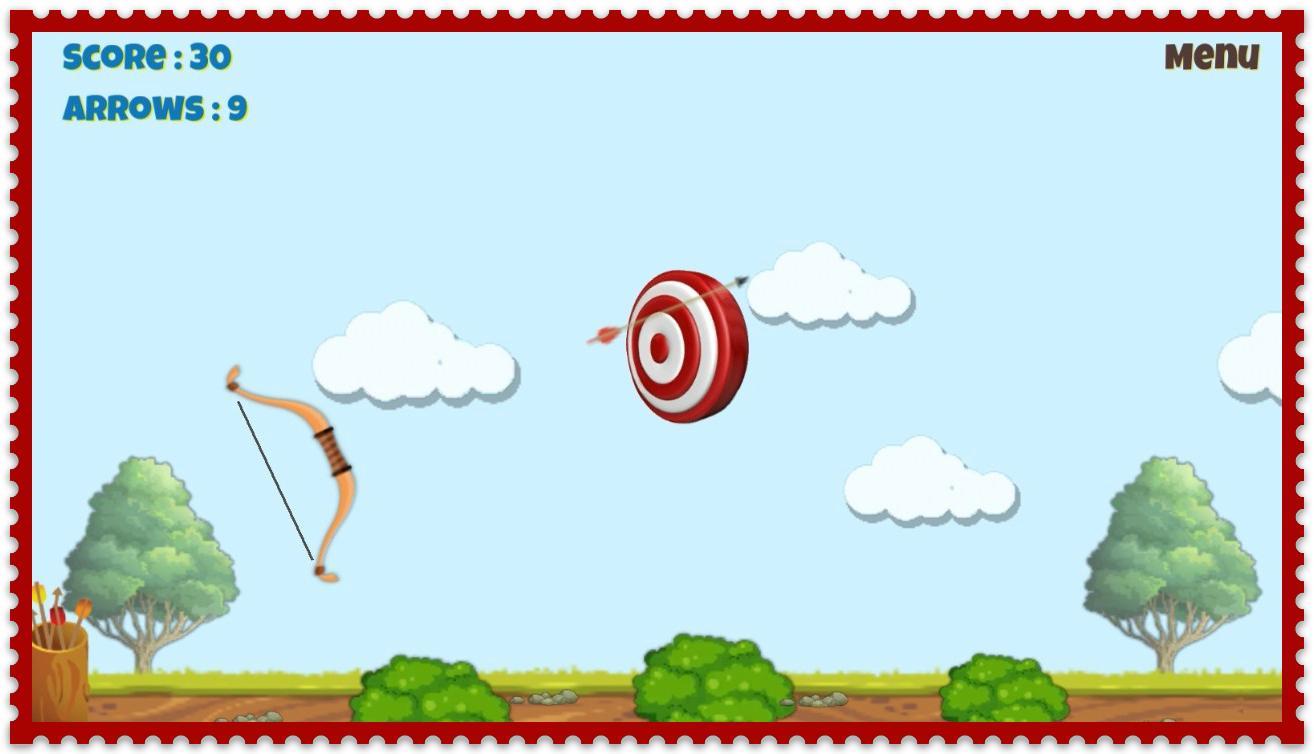 指で画面をタップしてひもを引いて、ターゲットの方向に弓を傾けます。正確なヒットごとに2つの矢印を取得するには、可能な限り取得してみてください。