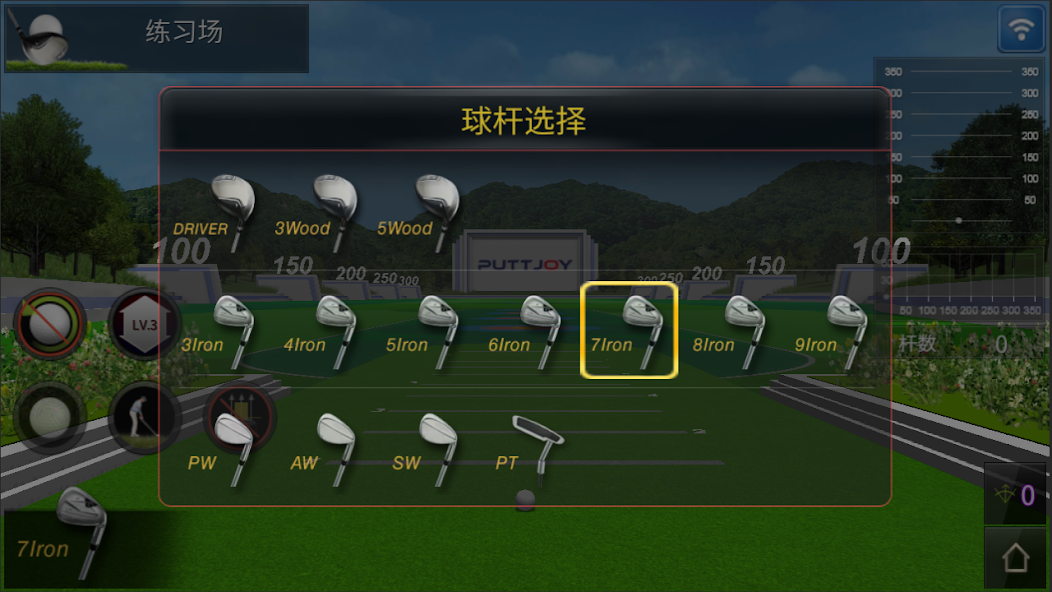 2)ドライビングレンジの練習モード:あらゆる種類のクラブからのアプローチとフルスイングの練習。