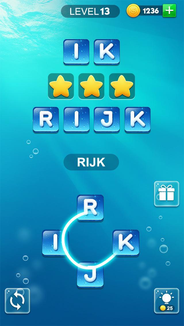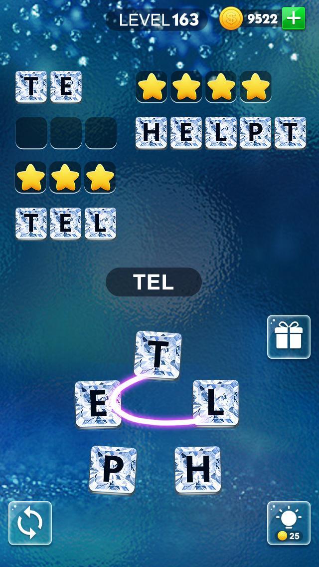 手紙をスワイプして単語を形成し、使いやすく、遊ぶのが楽しい。言葉を振って注文から変更することができます。単語が多いほど、より多くのコインが得られます。これをゲームの後半で使用して、行き詰まったときにヒントを得ることができます。
