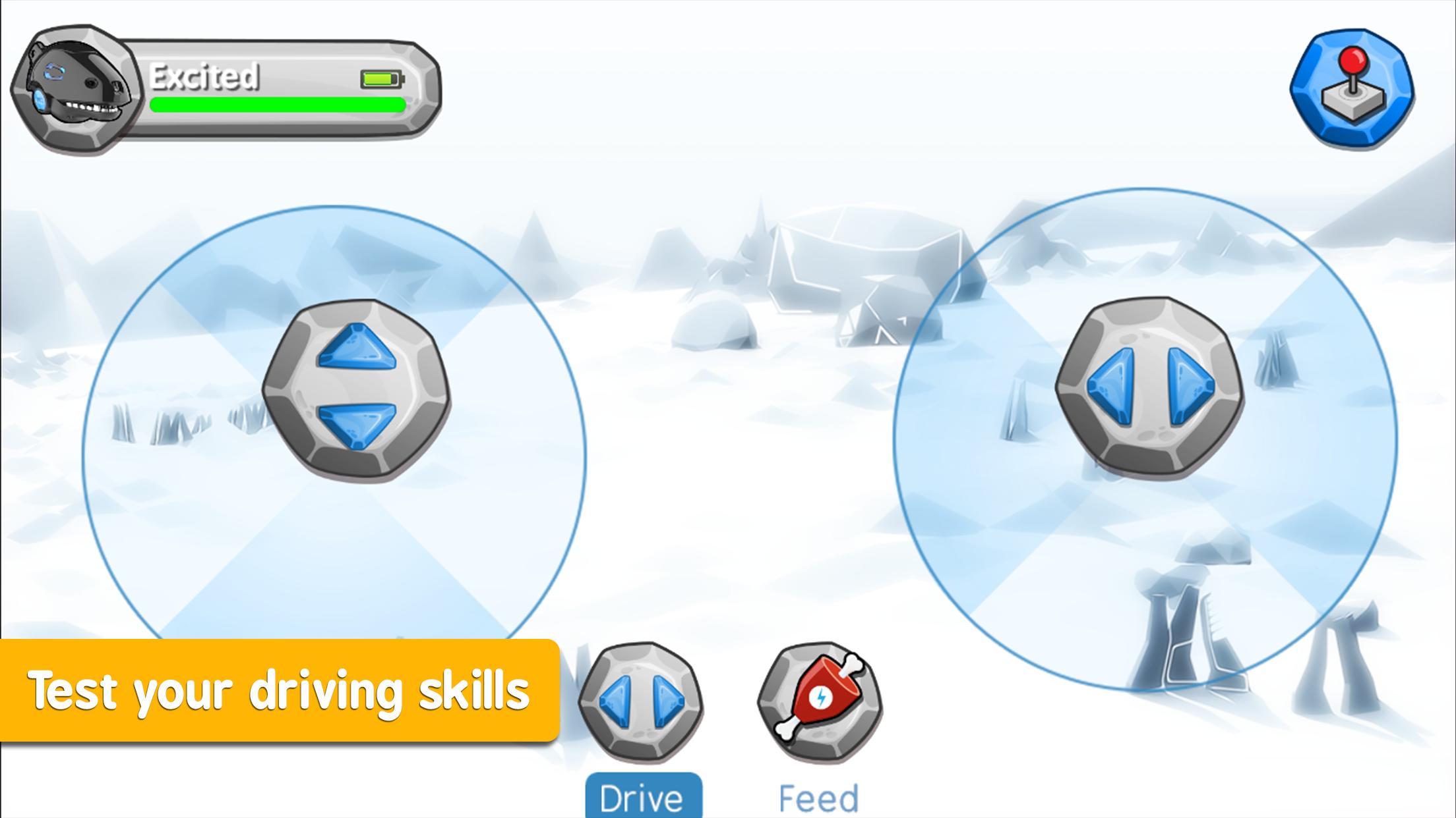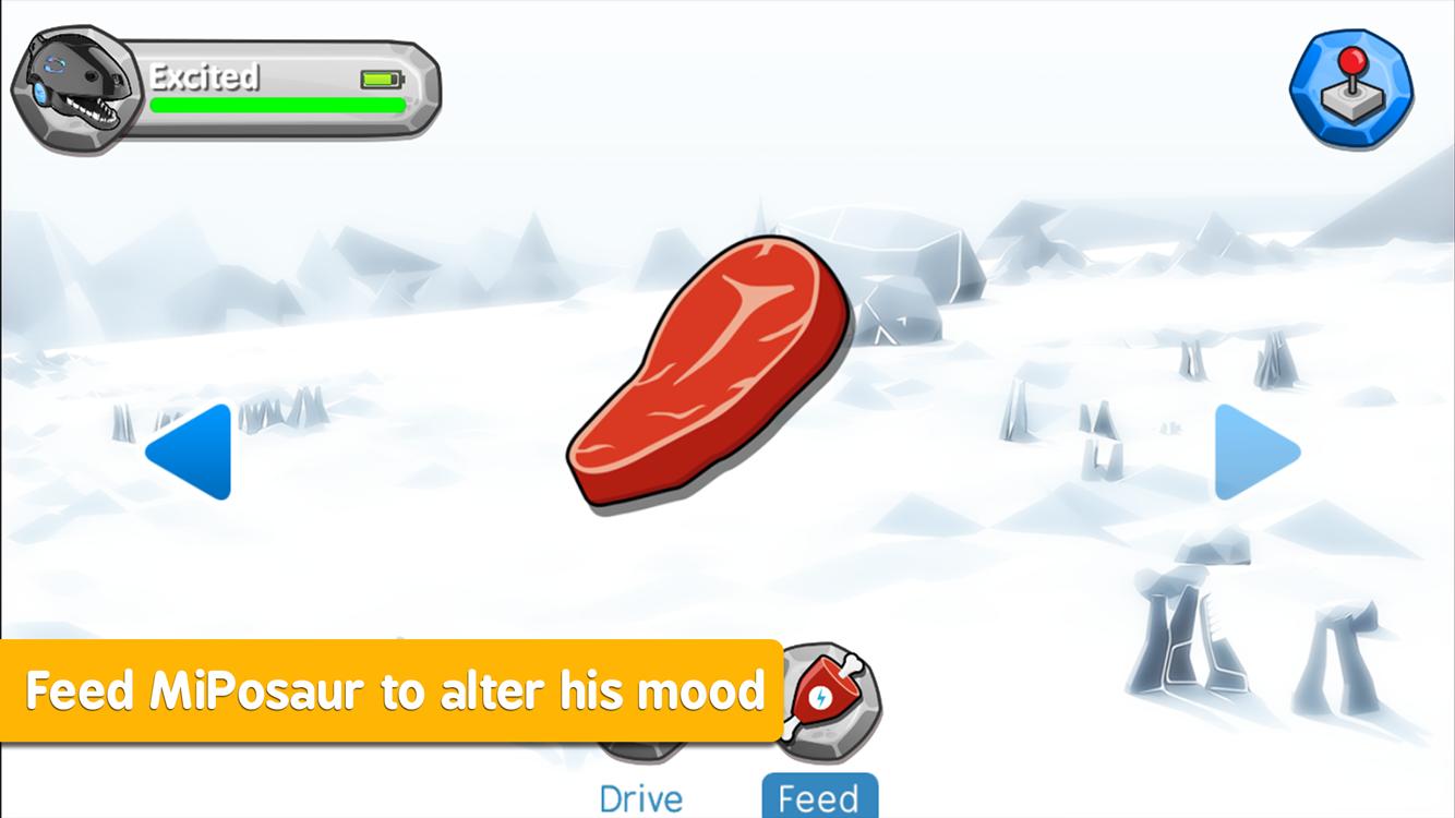 • 드라이브 - 단일 또는 듀얼 조이스틱 컨트롤을 사용하여 MIPosaur 운전하십시오.