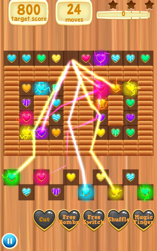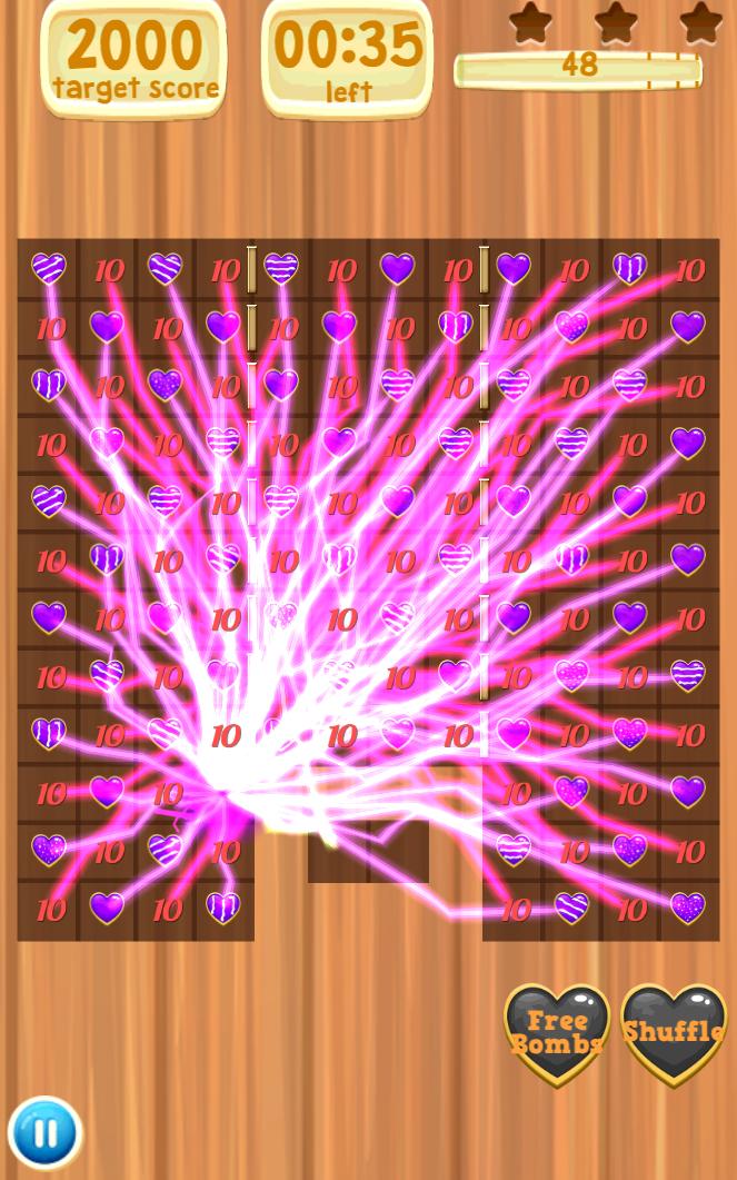 매우 중독성 매치 -3 하트 퍼즐 게임! 슈퍼 폭탄을 만들고 높은 점수를 얻으십시오!