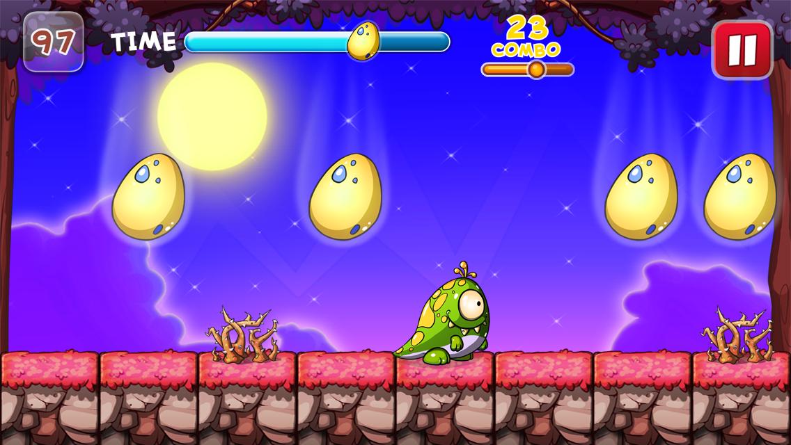 - 들어오는 : Herbert 열린 공간으로 점프하여 떨어지는 알을 피하십시오.