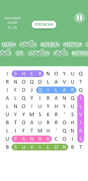 상자에서 셀로 손가락을 숨기는 단어를 찾으십시오. 모든 레벨이 완전히 확인되고 올바르게 제공됩니다.
