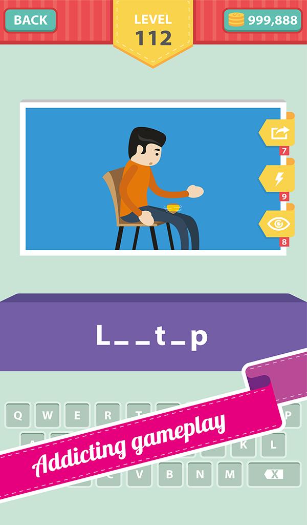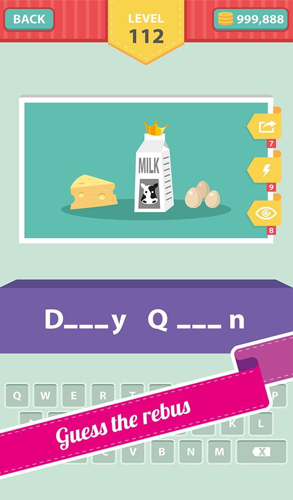 당신이 올바르게 대답하는 모든 Rebus 퍼즐에 대해, 당신은 동전으로 보상을받을 수 있습니다. 레벨이 점차 어려워지면서 자신을 태우는 것을 발견합니까? 걱정할 필요가 없습니다 - 코인도 필요한 경우 인앱 구매로도 제공됩니다.