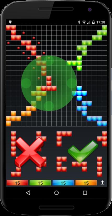 O jogo tem uma interface de usuário agradável e natural: basta arrastar e soltar a peça com o dedo. Gire uma peça da mesma forma.