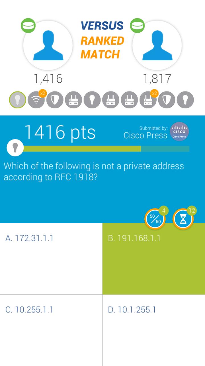 Um jogo de curiosidades interativas móveis que testa seu conhecimento da Cisco.