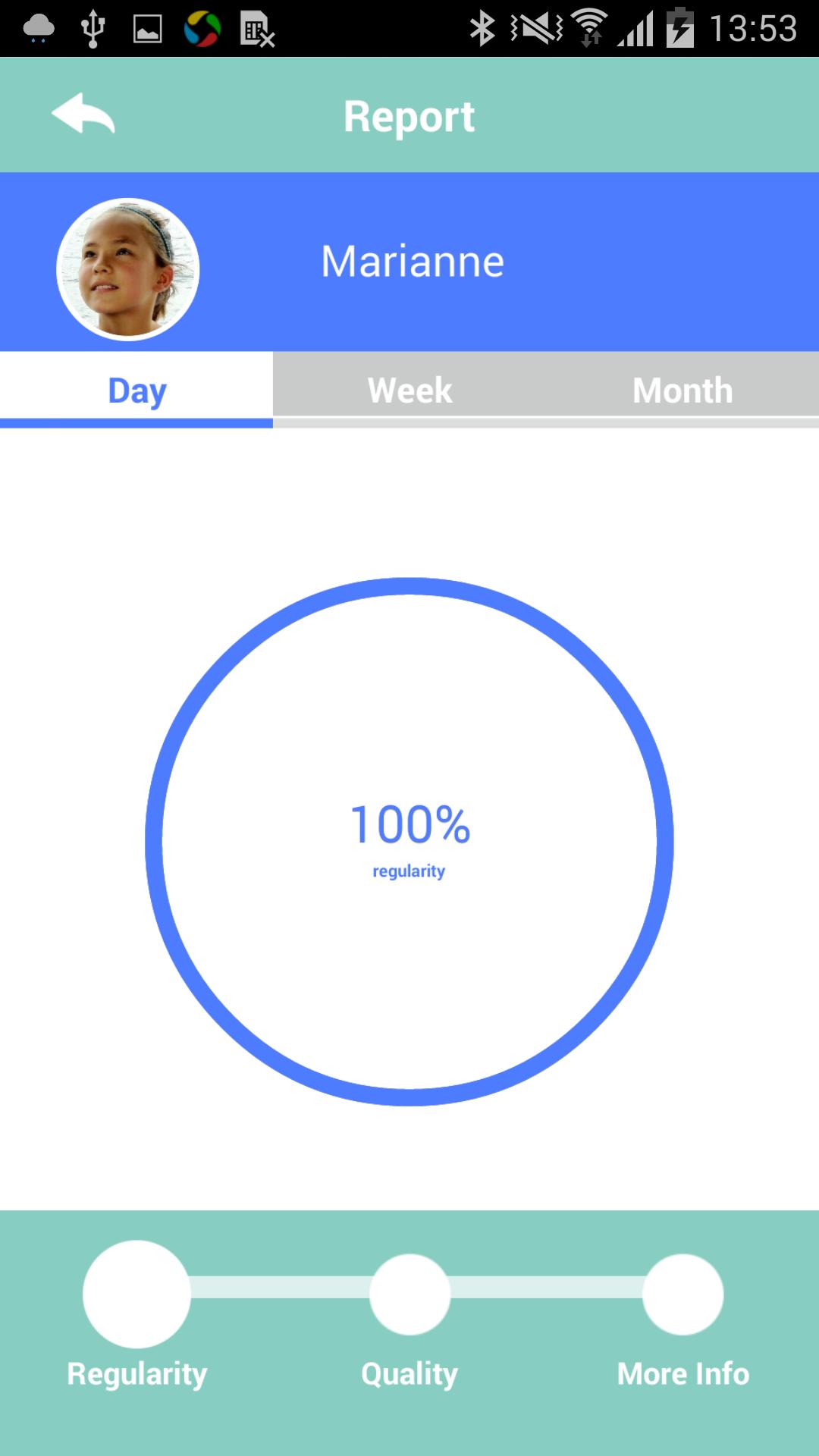 Usando o Bluetooth, ele se conecta ao smartphone e ao aplicativo Rainbow Junior que analisa a qualidade e a regularidade