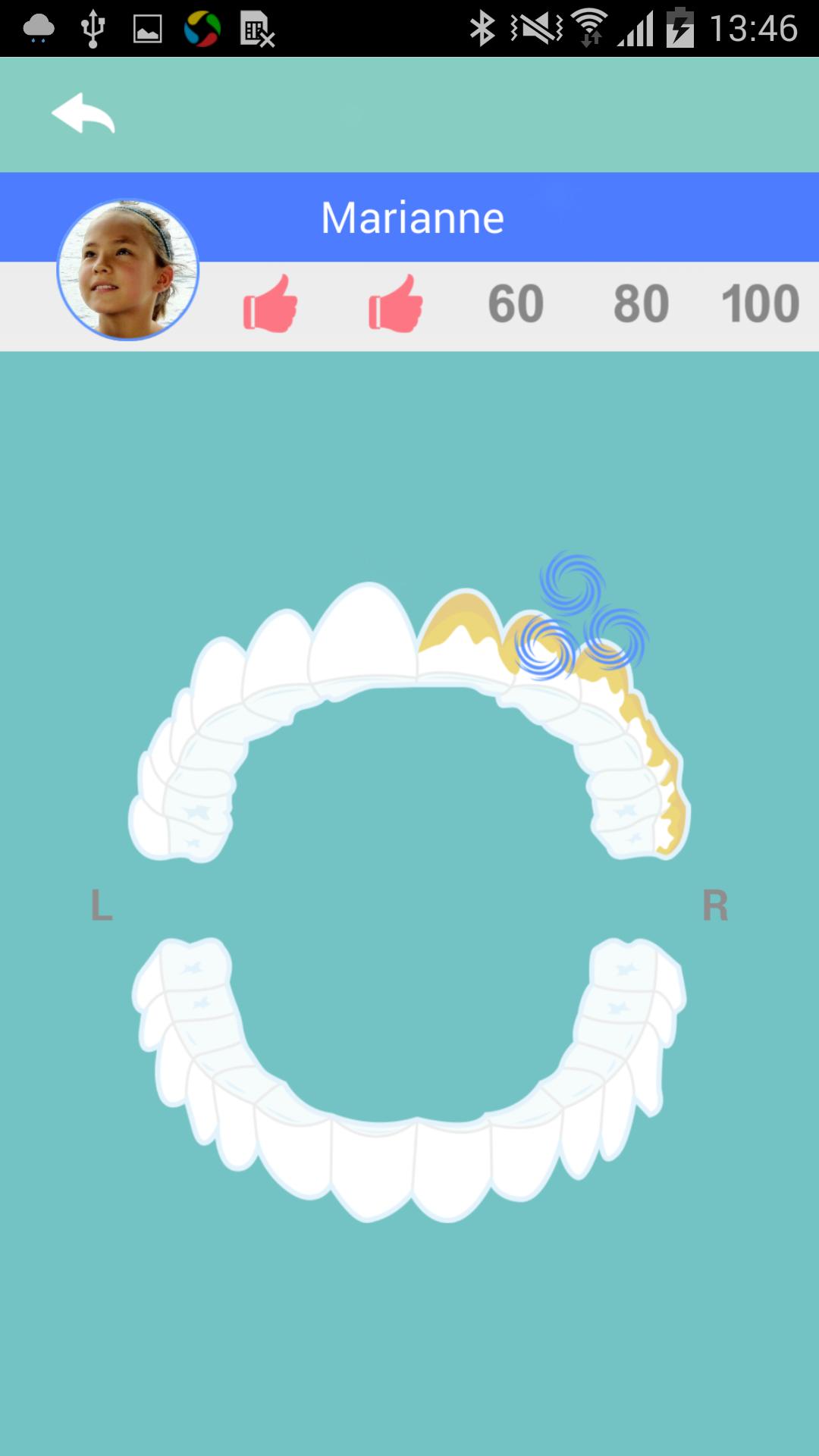 Com um giroscópio digital e sensores 3D, Rainbow Junior segue a escovação em tempo real dos juniores neste aplicativo.