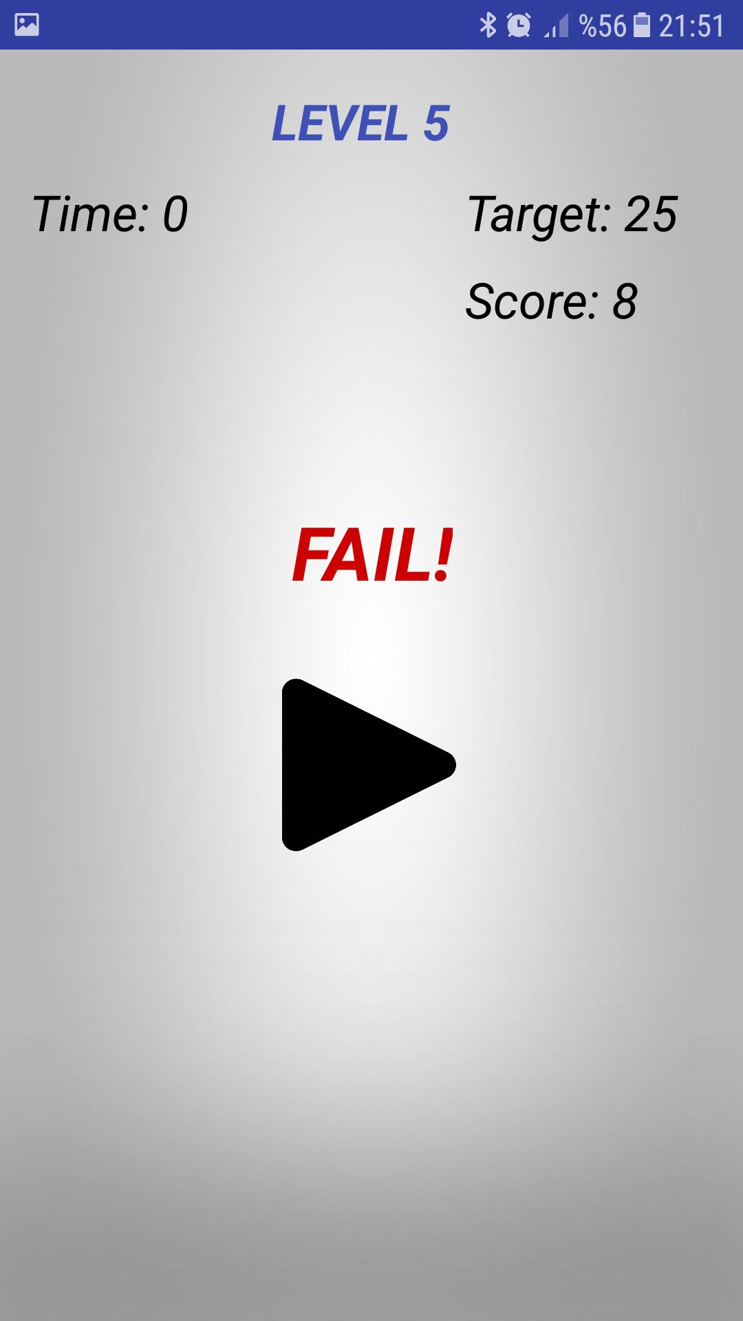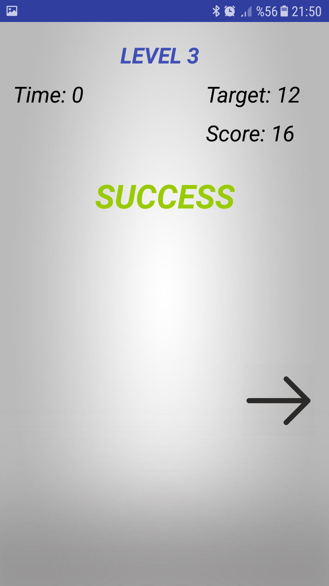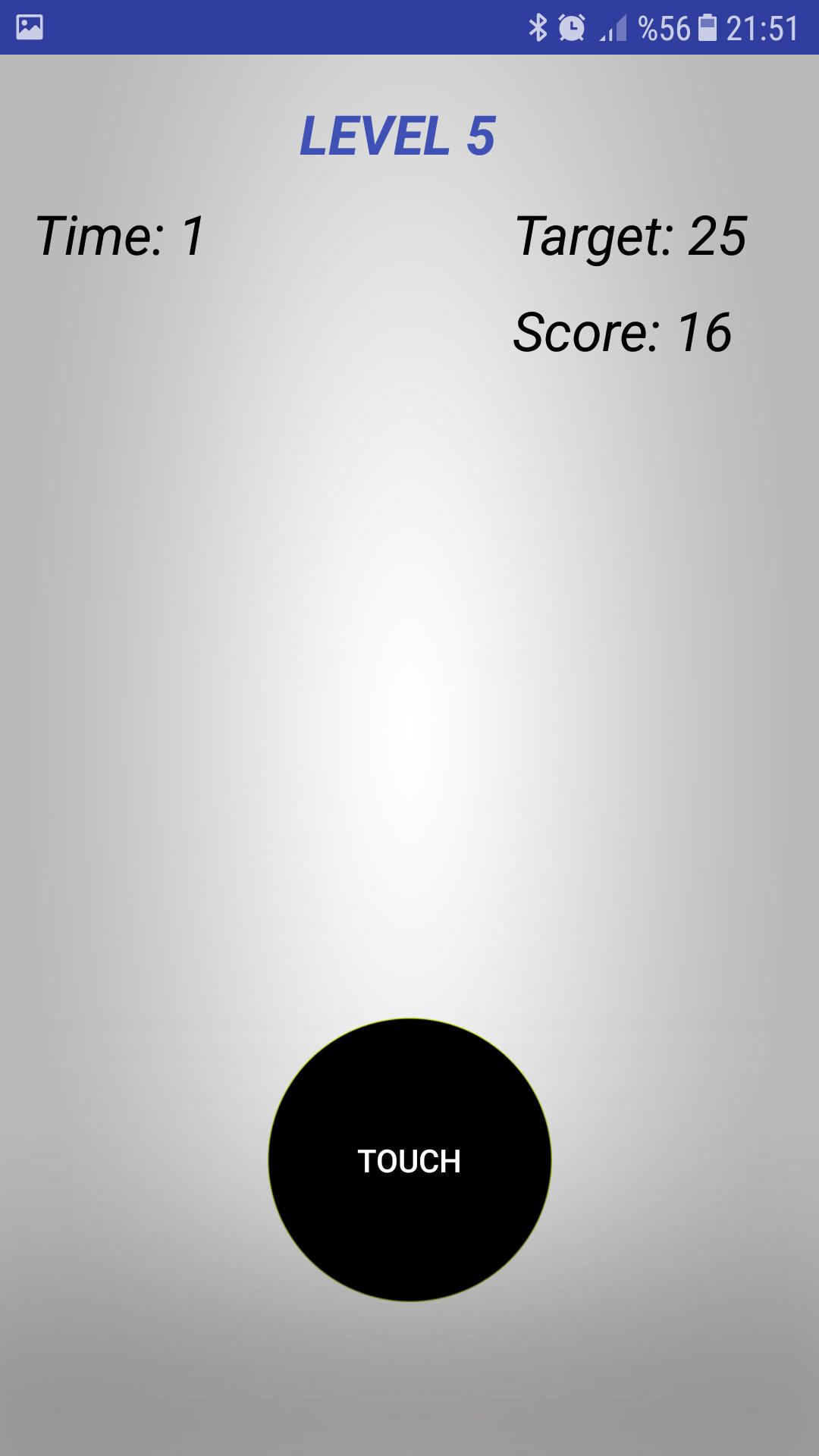 Ao tocar no botão, sua pontuação aumentará e, se você obtiver uma pontuação suficiente dentro do tempo determinado, pulará o próximo nível.