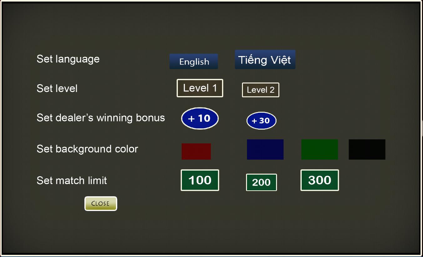 Cada jogador iniciará a partida com crédito de 100 pontos. Após cada jogo, o total será verificado pelo jogo e, se o saldo de qualquer jogador for zero ou menos, a partida terminar.
