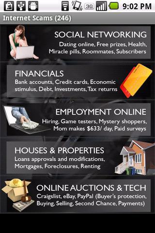Мошенничество в этом приложении сгруппированы в 9 категорий, в зависимости от отрасли: