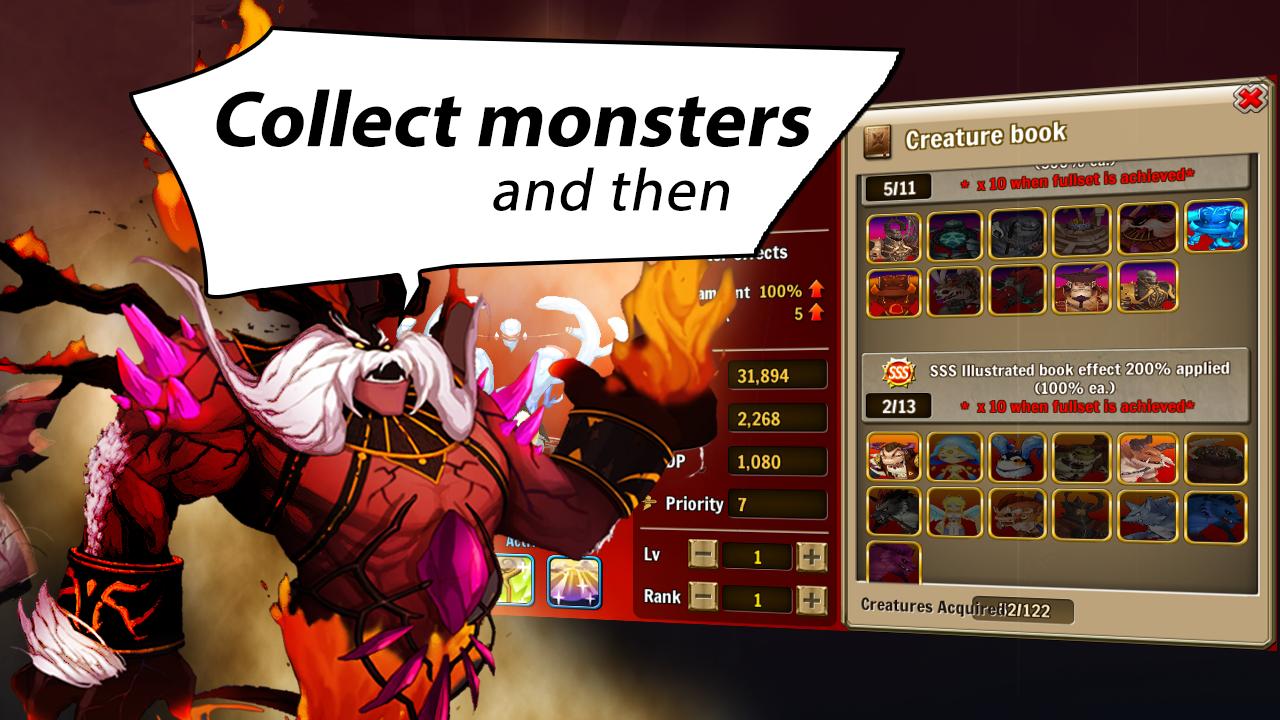• Сделайте 3 команды Monster и сражайтесь на Pvp Arena с пользователями по всему миру